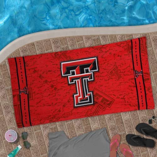 Get wrapped up in Red Raiders spirit when you head to your favorite pool or beach with this 30" x 60" beach towel! It features a vibrant school logo in the center with more full-color school graphics at each end and a tonal school graphic background.